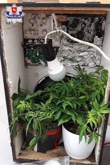 W miejscu zamieszkania mężczyzny policjanci ujawnili też dwie 30- centymetrowe rośliny konopi innych niż włókniste. Ukryte byłe one w obudowie głośnika. Miejsce „hodowli” posiadało lampę jak też wentylator. Mężczyzna zatrzymany został do wyjaśnienia, natomiast narkotyki i konopie zostały zabezpieczone. Policjanci ustalają wszystkie okoliczności sprawy. Uprawa jak i posiadanie konopi zgodnie z Ustawą o Przeciwdziałaniu Narkomanii zagrożona jest karą do 3 lat pozbawienia wolności.