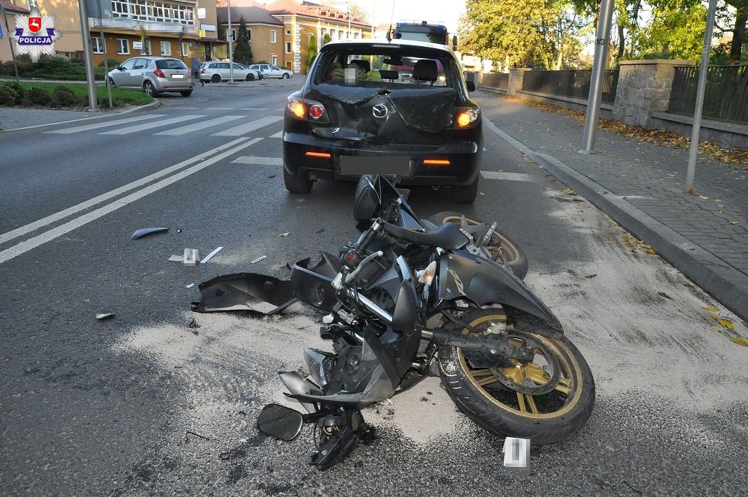 Do wypadku doszło wczoraj około godziny 16.30 na ulicy Warszawskiej w Białej Podlaskiej. Ze wstępnych ustaleń wynika, że kierująca motocyklem marki Yamaha, 15-letnia mieszkanka Białej Podlaskiej najechała na tył poprzedzającego ją samochodu osobowego marki Mazda. W chwili zdarzenia kierujący autem 21-letni mieszkaniec gminy Biała Podlaska zatrzymał samochód przed oznakowanym przejściem dla pieszych. Jak ustalili mundurowi nastolatka nie posiadała uprawnień do kierowania motocyklem.