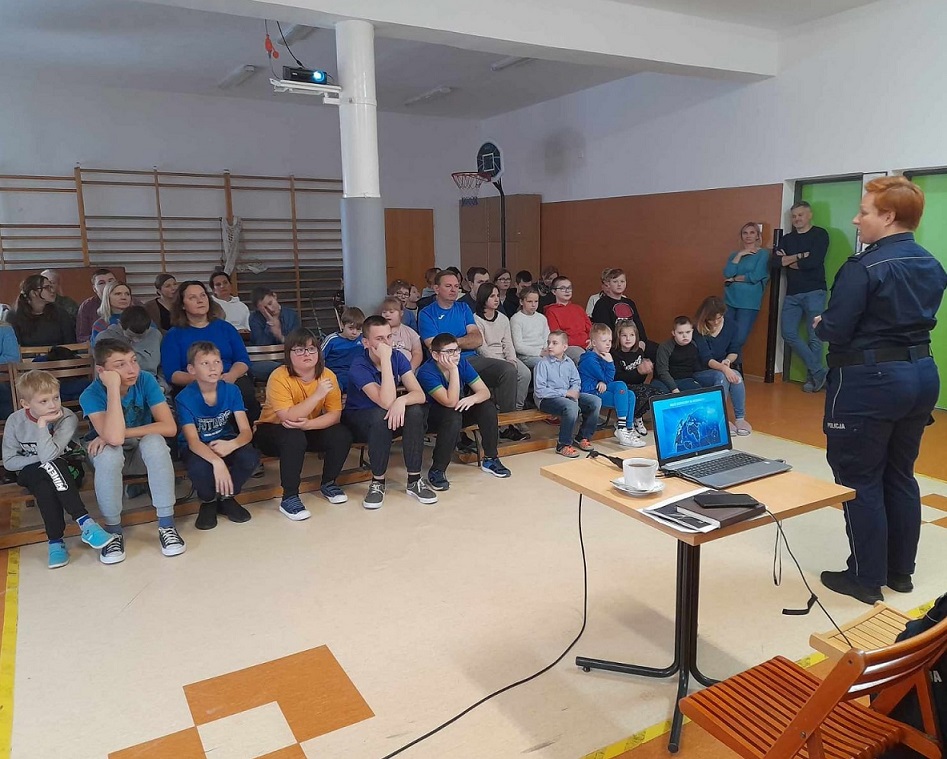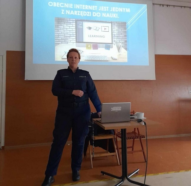 Funkcjonariuszka wyjaśniała jak bronić się przed hejtem, który jest częstym zjawiskiem w wirtualnym świecie. Tłumaczyła uczniom kwestie dotyczące bezpieczeństwa i ochrony danych osobowych. Omówiła też skutki jakie może przynieść zamieszczanie zdjęć czy filmów w Internecie. Policjantka przestrzegała również uczniów przed obrażaniem innych w sieci wyjaśniając, że w wirtualnej rzeczywistości nikt nie jest anonimowy. Tłumaczyła też jakie niebezpieczeństwo może nieść ze sobą zawieranie przypadkowych znajomości w Internecie.
