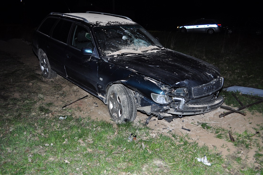 Do zdarzenia doszło wczoraj około godziny 18.30 w miejscowości Zawadki. Ze wstępnych ustaleń wynika, że 40-letni kierowca Audi, na łuku drogi stracił panowanie nad samochodem. Auto zjechało na pobocze, po czym uderzyło w baner reklamowy.
