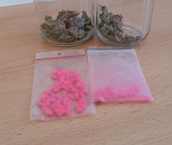 Mężczyźni trafili do policyjnego aresztu, a auto na parking strzeżony. Kryminalni zajmujący się sprawą, w trakcie prowadzonych przeszuka, ujawnili narkotyki w miejscu zamieszkania 22-letniego kierowcy. Zabezpieczyli słoiki z zawartością suszu roślinnego oraz woreczki zawierające tabletki.