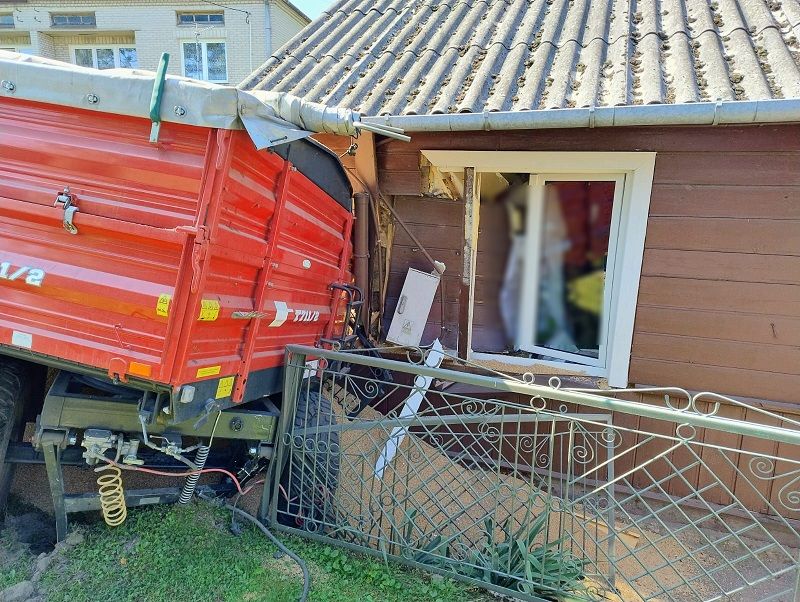 Jak wynika ze wstępnych ustaleń bialskich policjantów, 64-latek jechał ciągnikiem rolniczym przez ulicę Kościelną z podczepioną przyczepą ze zbożem. W pewnym momencie, doszło do uszkodzenia sworznia zabezpieczającego i zaczep przyczepy rozpiął się od zaczepu ciągnika. Skutkiem czego przewożąca 8 ton pszenicy przyczepa zjechała na przeciwległy pas ruchu, przejechała przez żywopłot, uderzyła w płot a następnie w róg drewnianego domu. Na szczęście w środku nie było domowników.