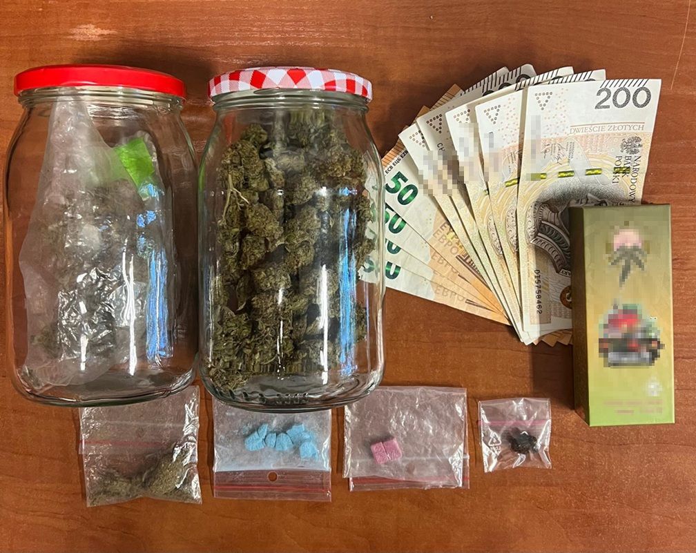 W trakcie prowadzonych czynności w mieszkaniu zamieszkiwanym przez 37-latka policjanci ujawnili susz roślinny, zbryloną substancję koloru brunatno-zielonego oraz tabletki. Po przeprowadzeniu wstępnego badania funkcjonariusze potwierdzili, że jest to marihuana, haszysz oraz ekstazy. Wystarczyłyby do sporządzenia ponad 200 porcji dealerskich tych narkotyków. Nielegalne środki zostały zabezpieczone, natomiast 37-latek został zatrzymany do wyjaśnienia.