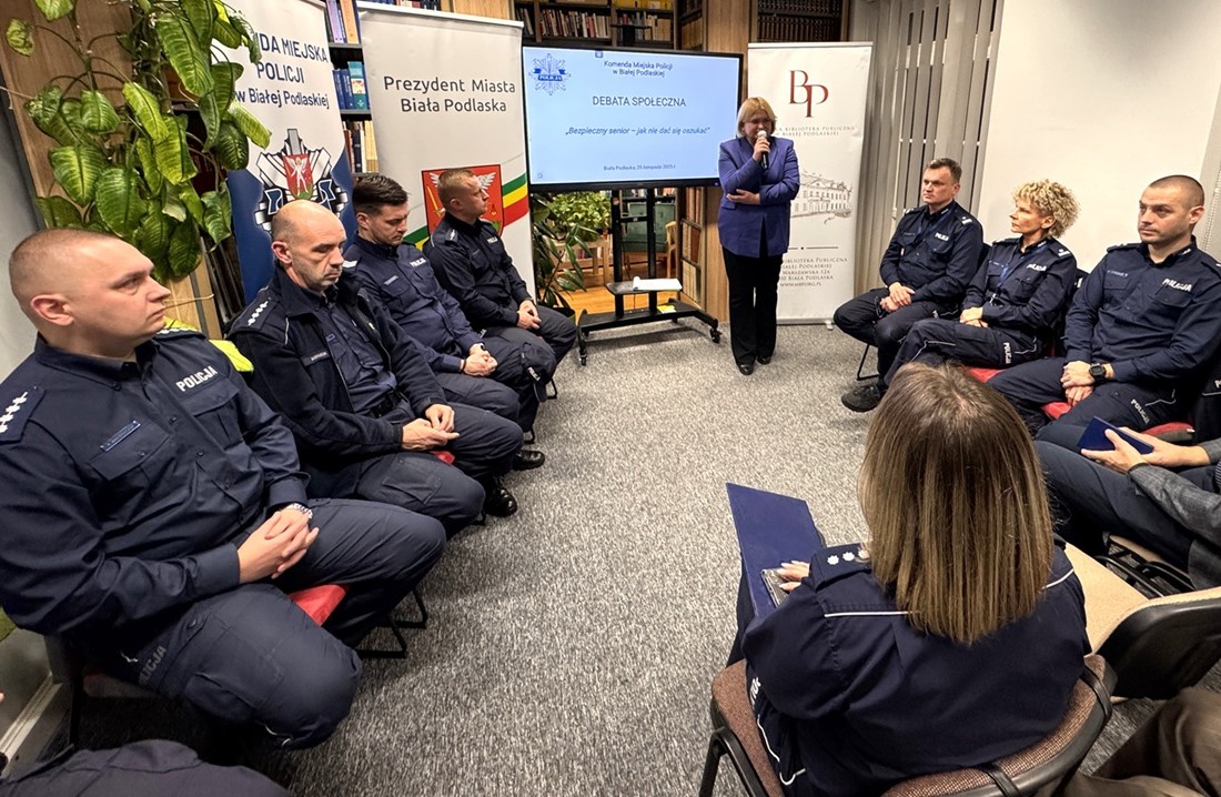 „Bezpieczny senior – jak nie dać się oszukać” - to hasło debaty społecznej, która odbyła się wczoraj w czytelni Miejskiej Biblioteki Publicznej w Białej Podlaskiej. Wśród poruszonych zagadnień znalazły się między innymi informacje dotyczące metod działania oszustów i sposoby zapobiegania tym przestępstwom. Ponadto funkcjonariuszka poruszyła kwestię narzędzi służących poprawie bezpieczeństwa oraz umożliwiających szybszy kontakt z Policją.