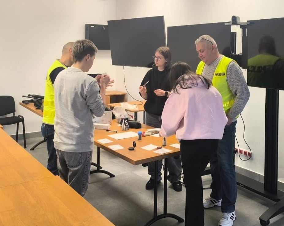 W trakcie spotkania licealiści mieli okazję obejrzeć nie tylko broń będącą na wyposażeniu jednostki, ale również sprzęt wykorzystywany przez mundurowych. Dodatkową atrakcją było spotkanie z technikami kryminalistyki. Policjanci wyjaśnili do czego służą przedmioty, które mają w swojej walizce. Przedstawili też niektóre sposoby ujawniania i zabezpieczania śladów biologicznych, mechanoskopijnych i traseologicznych. Młodzież mogła własnoręcznie ujawnić i zabezpieczyć odbitki własnych linii papilarnych.
