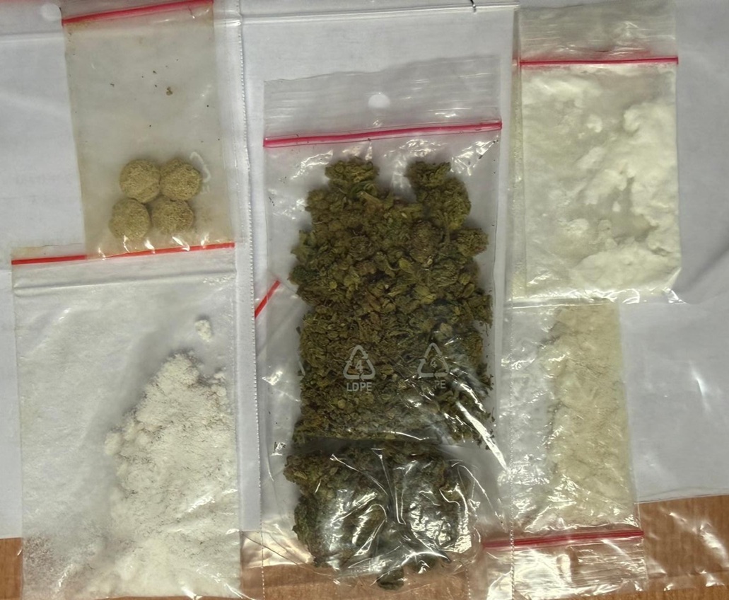 W trakcie prowadzonych czynności policjantki ujawniły woreczki z zawartością białego proszku. Podczas kolejnych czynności wykonanych przez kryminalnych oraz przewodnika psa służbowego wraz z policyjnym czworonogiem wyszkolonym do wyszukiwania zapachów narkotyków, policjanci odnaleźli w aucie kolejne woreczki z suszem oraz tabletkami. Wstępne badanie potwierdziło, że zabezpieczone środki to amfetamina, marihuana, mefedron oraz tabletki ekstazy.