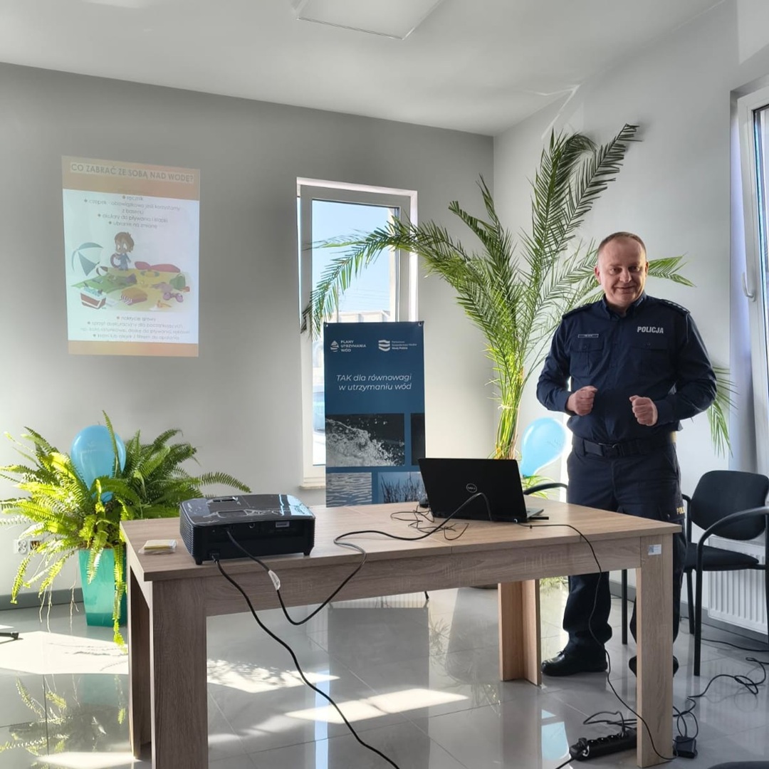 Bialski funkcjonariusz asp. szt. Zbigniew Oleszczuk spotkał się z uczniami Szkoły Podstawowej nr 2 im. Bohaterskich Lotników Podlasia. Spotkanie odbyło się w budynku Wód Polskich Zarząd Zlewni w Białej Podlaskiej w ramach programu „Aktywni Błękitni”. Funkcjonariusz przybliżył młodzieży zasady bezpiecznego przebywania nad wodą, a także podstawowe zasady udzielania pierwszej pomocy przedmedycznej.