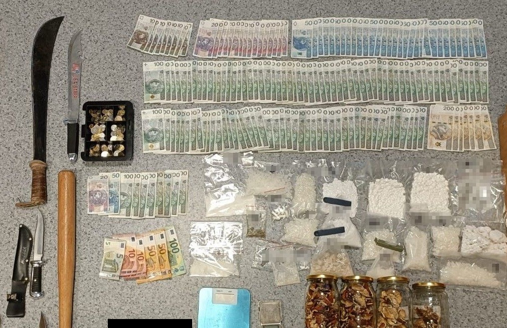 Po przeprowadzeniu wstępnego badania funkcjonariusze potwierdzili, że zabezpieczone środki to mefedron, amfetamina, plastry nasączone MDMA, marihuana, a także grzyby zawierające w swoim składzie substancje zabronione. Zabezpieczone środki wystarczyłyby do sporządzenia ponad 14 tysięcy porcji dilerskich.