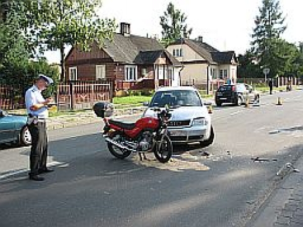 Wczoraj w Białej Podlaskiej, na ul. Witoroskiej doszło do wypadku drogowego. Kierujący samochodem osobowym marki Audi A6 Jarosław B. lat 19, zam. gm. Łomazy, podczas manewru skrętu w lewo nie ustąpił pierwszeństwa przejazdu motocyklowi m-ki Yamaha jadącemu z naprzeciwka, kierowanemu przez Mariusza K. lat 26, zam. Biała Podlaska. W wyniku zderzenia pojazdów, kierujący motocyklem doznał obrażeń ciała w postaci złamania ręki i palców u nogi oraz ogólnych potłuczeń. Został przewieziony do szpitala.