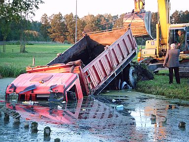 Z poczynionych ustaleń wynika, że 44-letni Edward L., mieszkaniec gminy Biała Podlaska, kierując samochodem ciężarowym m-ki Mercedes, na prostym odcinku drogi zjechał na pobocze, po czym po przejechaniu kilkudziesięciu metrów łąką wjechał do pobliskiej sadzawki z wodą, zatapiając pojazd. Opinia lekarza, a także okoliczności zdarzenia, wskazują że kierowca w trakcie jazdy doznał zaburzenia rytmu serca. Nieświadomie wcisnął gaz i rozpędzając się zjechał do stawu. Siła uderzenia wybiła szyby w kabinie auta.