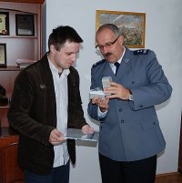 Spotkanie w Komendzie zakończyło się miłym akcentem w postaci wręczenia Panu Grzegorzowi listu gratulacyjnego i okolicznościowego upominku z dedykacją.