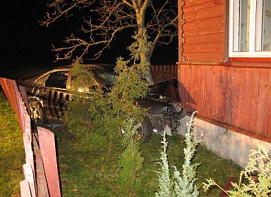 22-latek z gminy Drelów, na łuku drogi zjechał do przydrożnego rowu, a następnie uderzył w budynek mieszkalny. Mieszkańcy nie odnieśli obrażeń ciała. Dwóch pasażerów zostało przewiezionych do szpitala. Mężczyzna miał we krwi ponad 1,9 promila alkoholu.