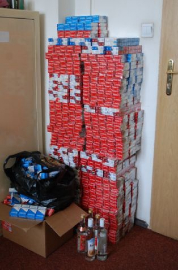 Policjanci Wydziału dw z Przestępczością Gospodarczą Komendy Miejskiej na obwodnicy miasta zatrzymali do kontroli samochód osobowy marki Renault Espace. Kierujący autem Sławomir L. lat 40, mieszkaniec Torunia przewoził w nim papierosy bez polskich znaków skarbowych akcyzy. W aucie znajdowało się łącznie 2225 paczek papierosów różnych marek oraz 2,5 litra alkoholu.