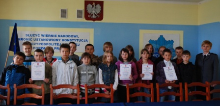 Drużyna w składzie Przemysław Dudek, Michał Piszcz oraz Katarzyna Nasiadka pomyliła się tylko raz i odebrała okolicznościowe upominki. Wychowawczyni przygotowująca reprezentację Jolanta Peszuk otrzymała dyplom za pierwsze miejsce swojej ekipy.