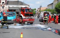 W symulowanych zdarzeniu drogowym uczestniczył bus, auto osobowe oraz motocykl. Obrażenia odniosło aż 9 osób. Najciężej rannych strażacy wyciągali z samochodu przy użyciu specjalistycznego sprzętu. Funkcjonariusze Policji biorący udział w ćwiczeniach zabezpieczali miejsce zdarzenia, ustalali okoliczności wypadku, rozpytywali świadków i pilnowali porządku.