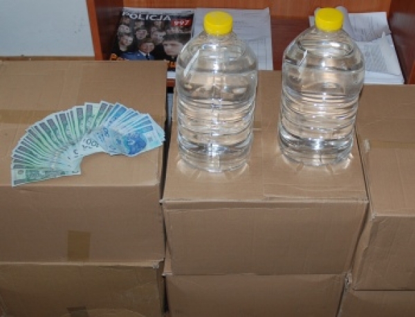 Zabezpieczony alkohol znajdował się w 108 pięciolitrowych plastikowych pojemnikach, a te z kolei w tekturowych pudełkach. Kolejne 10 litrów spirytusu mundurowi znaleźli przeszukując miejsce zamieszkania 32-latka. Zatrzymany oświadczył policjantom, że alkohol kupił od nieznanych osób z zamiarem jego dalszej odsprzedaży z zyskiem. Łączne uszczuplenie podatku akcyzowego na szkodę Skarbu Państwa wynosi w przypadku tej ilości spirytusu blisko 28 000 zł.