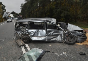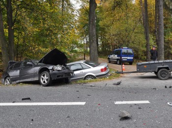 Do wypadku, w którym brały udział cztery auta, doszło wczoraj na trasie krajowej K-2 na wysokości Kaliłowa. Kierujący samochodem m-ki BMW, 22-letni mieszkaniec gminy Zalesie, nie dostosował prędkości do warunków ruchu i na skrzyżowaniu K-2 z drogą na Kaliłów, najechał na tył samochodu VW Passat oczekującego na skręt w lewo. W wyniku uderzenia samochód ten został wypchnięty na przeciwległy pas ruchu , zderzając sie czołowo z prawidłowo jadącym samochodem ciężarowym m-ki Iveco. Czwarty pojazd, celem uniknięcia zderzenia z tym autem zjechał do przydrożnego rowu. W wyniku zderzenia samochodów obrażeń ciała doznali kierowca oraz pasażer passata, w wieku 36 i 50 lat, oraz 34-letni pasażer busa Iveco. Mężczyźni z urazami kręgosłupa i głowy zostali przewiezieni do bialskiego szpitala.