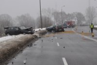 Dzisiaj, tuż przed godziną 10.00, doszło do zderzenia trzech aut na al. Jana Pawła II. Kierowany przez 21-letniego Białorusina VW Golf wpadł w poślizg, zjechał na przeciwległy pas ruchu i zderzył się z dwoma innymi samochodami. Pasażer jednego z nich. Do szpitala przewieziono czworo uczestników tego zdarzenia. Jak się okazało najpoważniejszych obrażeń doznał pasażer jednego z samochodów, który ma złamana nogę i wstrząs mózgu.