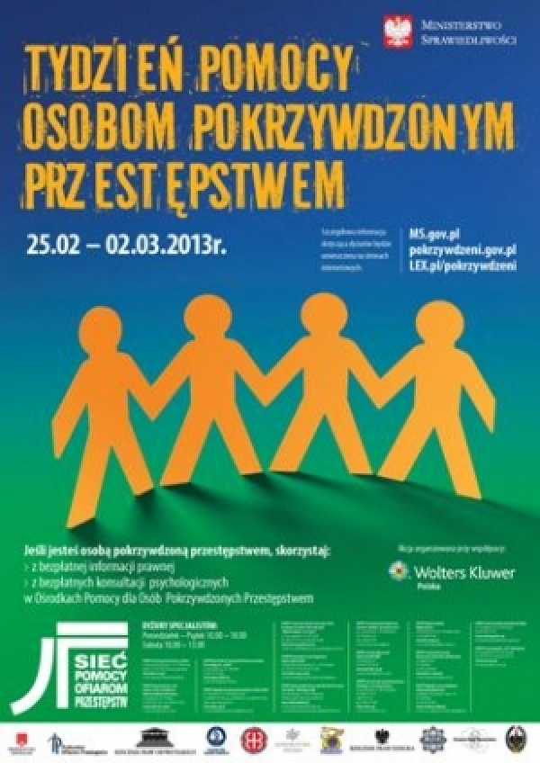 W dniach 25.02–02.03.2013r po raz kolejny obchodzony jest w Polsce Tydzień Pomocy Osobom Pokrzywdzonym Przestępstwem. W ramach akcji prawnik, psycholog, komornik, kurator, pracownik socjalny oraz policjanci, będą udzielali bezpłatnych porad. Zazwyczaj, to właśnie funkcjonariusze Policji, jako pierwsi mają kontakt z pokrzywdzonymi. Ochrona praw ofiar przestępstw i pomoc pokrzywdzonym, to ważne zadanie policyjnej służby.