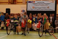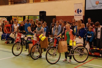 Zwycięska drużyna w składzie Sylwester Kwiatkowski, Aleksandra Jawoszek oraz Jowita Kwiatkowska otrzymała rowery górskie oraz inne atrakcyjne upominki ufundowane przez sponsorów imprezy. Przygotowanej do konkursu przez opiekunki: Marlenę Tobiszewską i Reginę Skerczyńską ekipie, serdecznie gratulujemy i życzymy osiągnięcia wysokiej lokaty w czerwcowym finale wojewódzkim.
