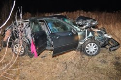 Natomiast około dwie godziny później do wypadku doszło na trasie Dobrynka – Piszczac. Samochód marki Audi na prostym odcinku drogi, nie dostosował prędkości do warunków drogowych, zjechał na pobocze, a następnie kilkukrotnie dachował. W samochodzie znajdowały się trzy osoby. Jedna z nich, 20-letni mężczyzna z gminy Piszczac, z poważnymi obrażeniami ciała został przewieziony do bialskiego szpitala. Pozostałe osoby jadące autem, tj. 30-letnia mieszkanka bialskiej gminy i 30-letni mieszkaniec gminy Piszczac odnieśli lekkie obrażenia ciała.