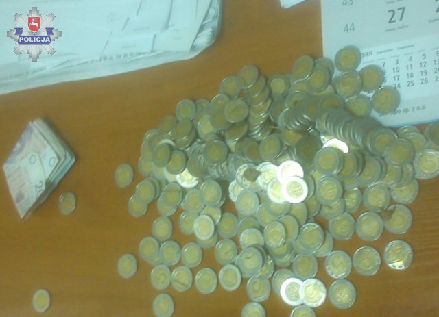 Podczas trzech takich przestępstw dokonanych w Białej Podlaskiej w sierpniu, październiku i listopadzie, 38-latek spowodował łączne straty na kwotę blisko 10 000 zł. We wtorek kryminalni z Wydziału dw z Przestępczością Przeciwko Mieniu wytypowali go jako sprawcę zgłoszonego właśnie włamania i zatrzymali kilkadziesiąt minut po jego dokonaniu. Mężczyzna został zatrzymany na ulicy, którą szedł przytrzymując ręką opadające spodnie. Okazało się, że w kieszeniach miał blisko 1 500 zł w monetach pięciozłotowych i 500 zł w banknotach.