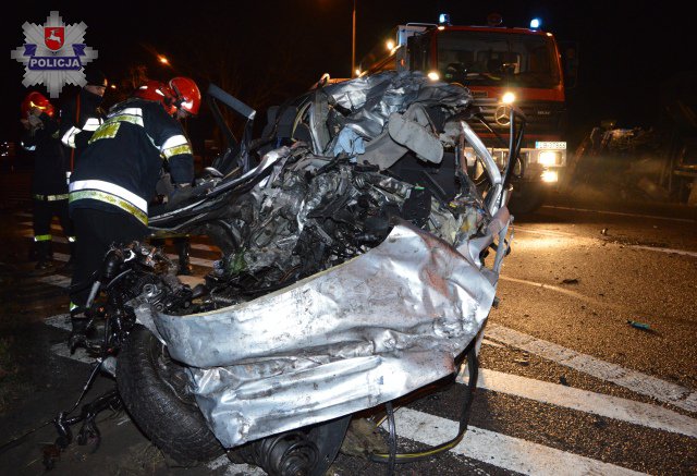 Do tragicznego wypadku doszło wczoraj o godzinie 15.20 w rejonie miejscowości Styrzyniec. W wyniku czołowego zderzenia z tirem wiozącym żeliwo, VW Sharan uległ kompletnemu zniszczeniu. Śmierć na miejscu poniósł kierowca osobówki. Policjanci ustalają tożsamość ofiary wypadku.