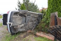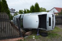 Kilkanaście dni po otrzymaniu prawa jazdy młody kierowca spowodował wypadek. Wczoraj na łuku drogi wypadł z jezdni i uderzył w ogrodzenie posesji. W następstwie zdarzenia jadąca jako pasażerka matka kierowcy z urazem głowy została przewieziona do szpitala. Samochód uszkodził kilka przęseł ogrodzenia i wywrócił się na bok.