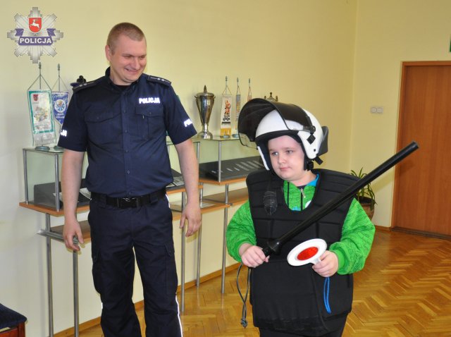 Komendę Miejską Policji w Białej Podlaskiej odwiedziły dzieci ze stowarzyszenia „Wspólny Świat”. Podopieczni stowarzyszenia mieli okazję posłuchać krótkich prelekcji na temat pracy w Policji, zasad bezpiecznego zachowania się w ruchu drogowym i poza nim. Dużą atrakcją dla dzieci był pokaz sprzętu policyjnego i radiowozów.