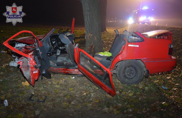 Do wypadku doszło po godzinie 20.00 na krajowej „dwójce” na wysokości miejscowości Wysokie. Z nieustalonych na razie przyczyn, na prostym odcinku drogi kierowca jadącego w kierunku Siedlec samochodu marki Daewoo Nexia zjechał na przeciwny pas ruchu, otarł się o bok naczepy jadącego w kierunku granicy tira, po czym wpadł do rowu i uderzył w drzewo. W samochodzie jechało 4 mieszkańców powiatu siedleckiego. Do ich wydobycia strażacy musieli użyć sprzętu hydraulicznego.