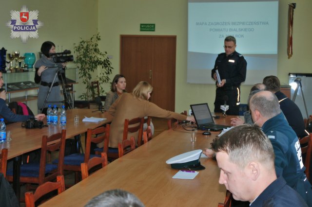 Wczoraj w komendzie miejskiej zebrali się przedstawiciele instytucji zarządzających drogami wszystkich szczebli, od dróg krajowych po gminne, oraz służb dbających o bezpieczeństwo na drogach. Po otwarciu spotkania przez Zastępcę Komendanta podinsp. Grzegorza Pietrusika, Naczelnik Wydziału Ruchu Drogowego podinsp. Artur Ostropolski przedstawił analizę stanu bezpieczeństwa na drogach za ubiegły rok. Zaprezentowano również przykładowe graficzne wersje map ilustrujące zagrożenia wypadkami w powiecie bialskim.