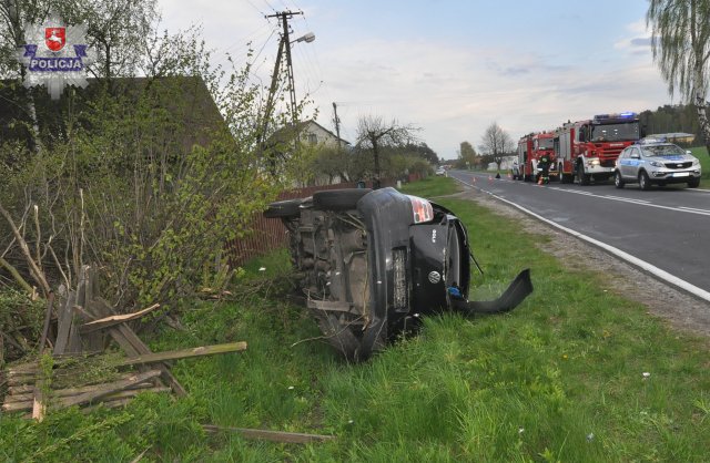 Do zdarzenia doszło wczoraj na drodze wojewódzkiej W-806 w miejscowości Strzakły. Na prostym odcinku drogi kierujący golfem 38-letnim mieszkaniec Łukowanie dostosował prędkości do warunków jazdy, stracił panowanie nad autem, zjechał na lewe pobocze, staranował płot i dachował. Samochodem jechało pięć osób i wszystkie zostały hospitalizowane w okolicznych szpitalach, w Białej Podlaskiej, Radzyniu Podlaskim i Łukowie. Dwie osoby wypadły z samochodu, a jedną została zakleszczona w pojeździe i do jej wyciagnięcia potrzebna była interwencja strażaków. Najciężej ranny został pasażer, którego transportem lotniczym przewieziono do Lublina. Wszyscy pasażerowie to mieszkańcy Białej Podlaskiej, 32-letni mężczyzna i trzy kobiety w wieku 21, 19 i 17 lat.