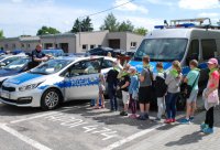 Dzieci usłyszały także szereg informacji o pracy w różnych wydziałach Policji, poznali również niektóre elementy wyposażenia policjanta prewencji do służby. Jak zawsze w przypadku tego rodzaju wizyt, nie mogło się obyć bez pamiątkowego zdjęcia w policyjnym radiowozie.