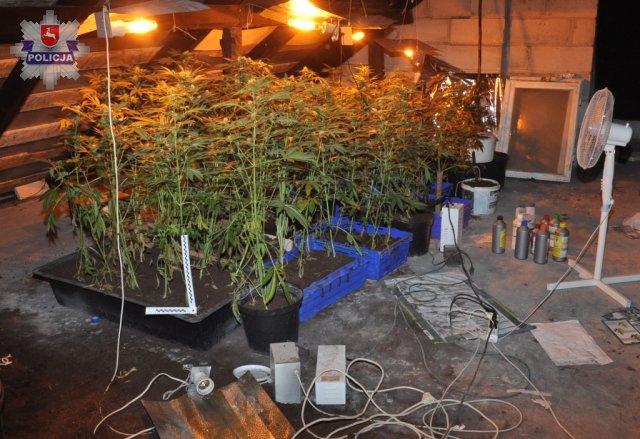 Policjanci z Wydziału Kryminalnego terespolskiego komisariatu, uzyskali informację, że w jednym z domów w Terespolu mogą być uprawiane konopie. Te ustalenia potwierdziło przeszukanie posesji 45-letniego mieszkańca Terespola. Na strychu domu jednorodzinnego funkcjonariusze znaleźli profesjonalnie prowadzoną uprawę konopi indyjskich. Kryminalni zabezpieczyli 84 krzaki konopi i urządzenia służące do uprawy, m.in. lampy, wiatraki, przetwornice prądu i okablowanie. Ponadto u mężczyzny zabezpieczono niewielką ilość suszu marihuany.