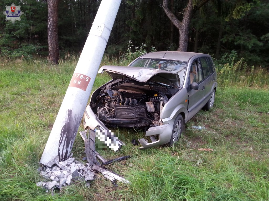 Nietrzeźwy kierowca forda przewrócił słup energetyczny