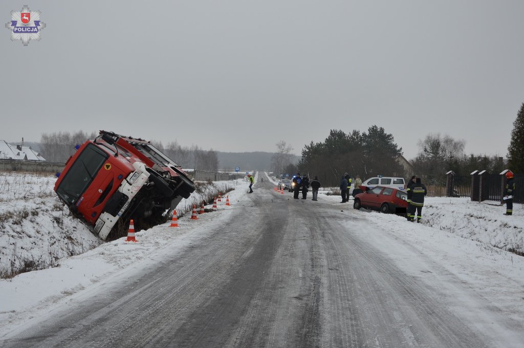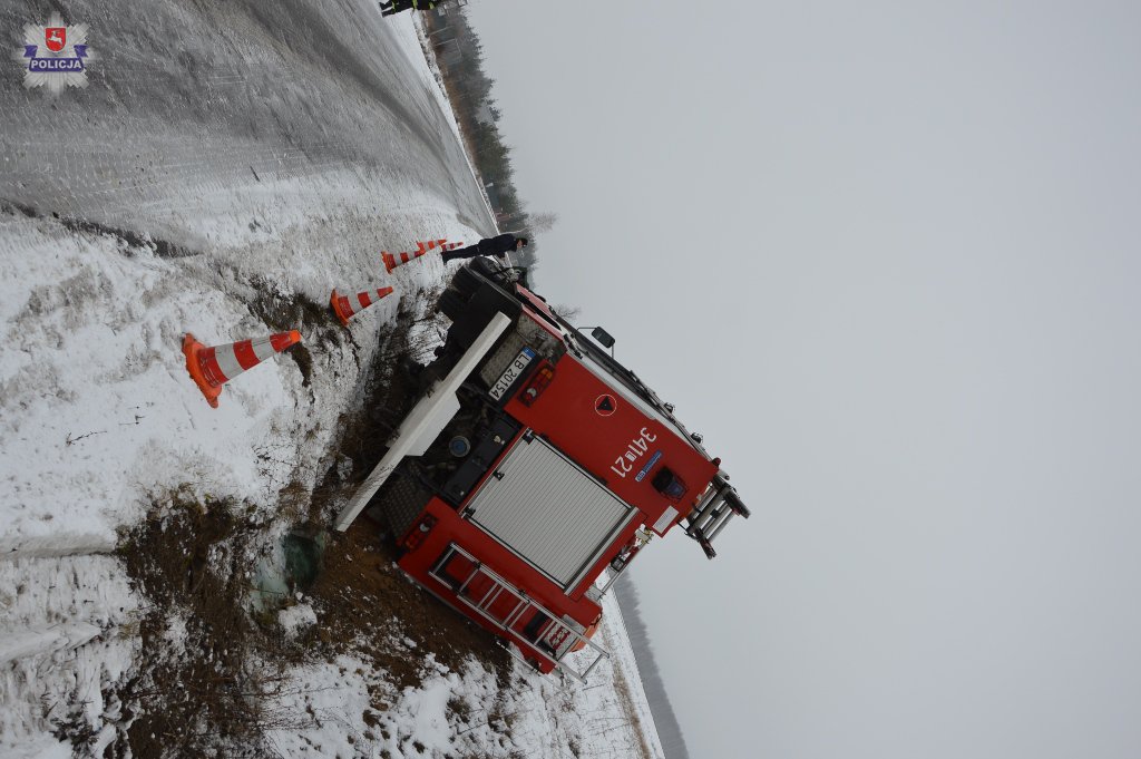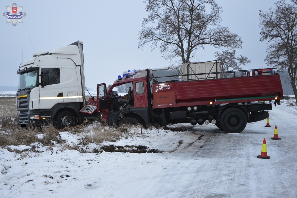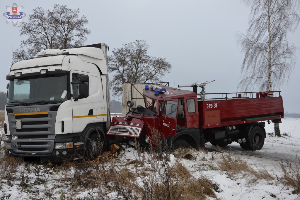 Do drugiej kolizji doszło natomiast w Starej Bordziłówce. Tam wóz bojowy Jelcz strażaków ochotników z Worgul, którym jechały cztery osoby, doprowadził do zderzenia z samochodem ciężarowym marki Scania, którego kierowcą był 41-latek z Łochowa. Do kolizji doszło w trakcie wyprzedzania ciężarówki przez wóz strażacki, którego kierowca stracił panowanie nad pojazdem na śliskiej i oblodzonej jezdni i uderzył w bok wyprzedzanego samochodu ciężarowego. W wyniku zderzenia obydwa pojazdy zjechały do przydrożnego rowu. Na szczęście nikomu nic się nie stało. Kierowca wozu strażackiego, 62-latek z Worgul, został ukarany mandatem za spowodowanie kolizji.