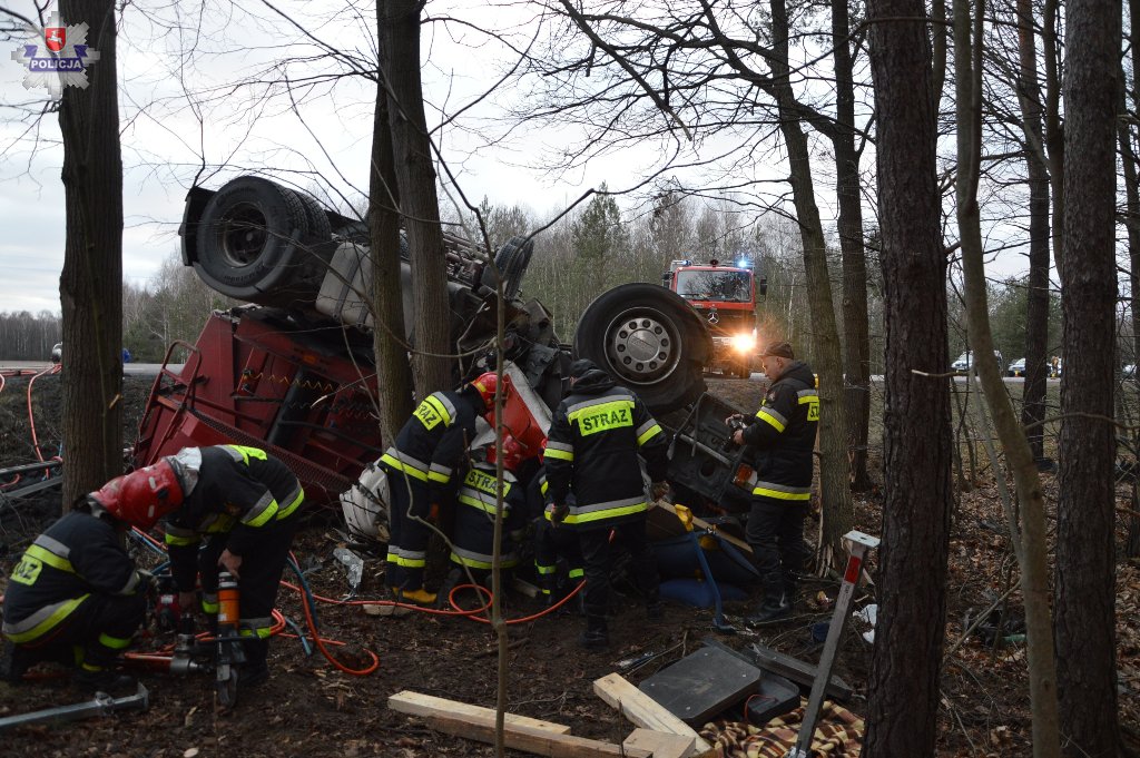 Kierowca Scanii, pomimo tego, że doznał urazu kręgosłupa i lewej ręki oraz ogólnych potłuczeń, może mówić o sporym szczęściu, gdyż kabina ciężarówki została praktycznie całkowicie zmiażdżona. Jej uszkodzenia były tak duże, że wyjęcie z niej mężczyzny było możliwe dopiero po dwóch godzinach pracy strażaków, którzy musieli korzystać ze specjalistycznego sprzętu.