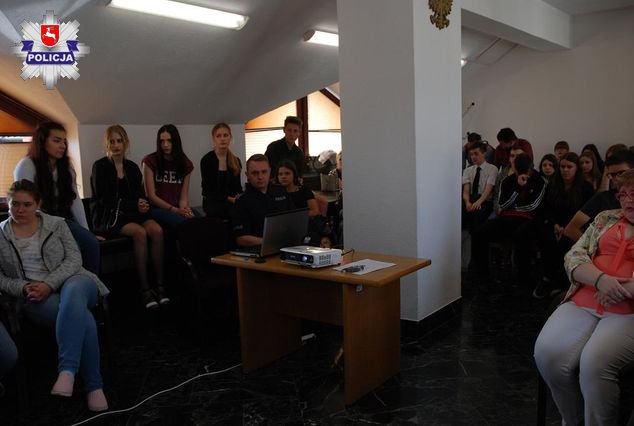 Dzisiaj bialscy policjanci spotkali się z uczniami II klas I Liceum Ogólnokształcącego im. J.I Kraszewskiego w Białej Podlaskiej. Spotkanie odbyło sie w budynku Sądu Rejonowego, w ramach obchodów Dnia Wymiaru Sprawiedliwości. Podczas pogadanki uczniowie mieli możliwość bezpośredniego uzyskania szczegółowych informacji dotyczących służby w Policji. Mundurowi przedstawili zasady rekrutacji do służby i jego poszczególne etapy.