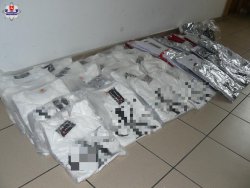 Wczoraj policjanci bialskiej komendy wspólnie z funkcjonariuszami Lubelskiego Urzędu Celno-Skarbowego delegatura w Białej Podlaskiej weszli na teren posesji zamieszkałej przez 23-letniego mieszkańca gminy Wisznice. Z posiadanych informacji wynikało, że mężczyzna za pośrednictwem portali internetowych może wprowadzać do obrotu podrobioną odzież popularnych firm. Na miejscu posiadane informacje potwierdziły się. Funkcjonariusze ujawnili i zabezpieczyli „nielegalny towar”. Mężczyzna posiadał koszulki, dresy oraz obuwie z nielegalnie naniesionymi znakami towarowymi. Policjanci ustalają wszystkie okoliczności tej sprawy. Zgodnie z Ustawą - prawo własności przemysłowej przestępstwo to zagrożone jest karą pozbawienia wolności do lat 2.