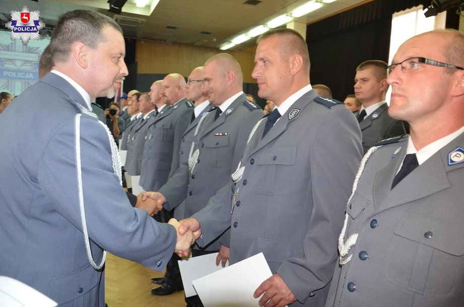Podczas uroczystości wręczone zostały nominacje na wyższe stopnie policyjne. Łącznie awansowanych zostało 101 policjantów. Czterech w korpusie oficerów starszych, 4 funkcjonariuszy otrzymało awans w korpusie oficerów młodszych, 44 policjantów otrzymało awans w korpusie aspirantów- z czego dwóch policjantów nagrodzonych zostało przedterminowym awansem, 38 funkcjonariuszy w korpusie podoficerów oraz 11 policjantów w korpusie szeregowych. Warto tu podkreślić, że Komendant Miejski Policji w Białej Podlaskiej Grzegorz Pietrusik otrzymał awans na stopień młodszego inspektora policji. Akt mianowania na wyższy stopień policyjny Pan Komendant otrzymał w dniu 14 lipca w Parczewie podczas obchodów Wojewódzkiego Święta Policji. W trakcie uroczystości Policjanci otrzymali również odznaczenia. Dziewięciu funkcjonariuszy otrzymało Brązową Odznakę Zasłużony Policjant. Dodatkowo podczas wojewódzkich obchodów święta podinsp. Marek Lubański otrzymał srebrną odznakę zasłużony policjant.