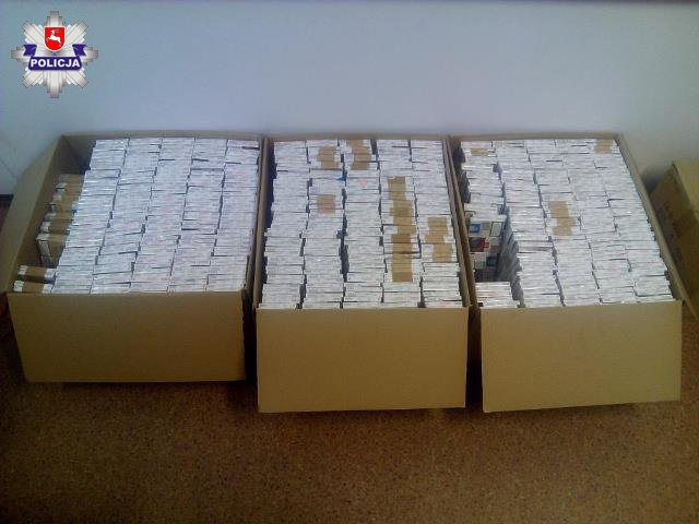 Funkcjonariusze z Komisariatu Policji w Terespolu ujawnili niemal 3 tys. paczek papierosów bez polskich znaków skarbowych akcyzy. Nielegalny towar posiadał w bagażniku mitsubishi 22- letni obywatel Białorusi. Łączna kwota uszczuplenia należnego podatku akcyzowego to niemal 50 tys zł. Kodeks karno - skarbowy za ten czyn przewiduje grzywnę i przepadek zarekwirowanego towaru