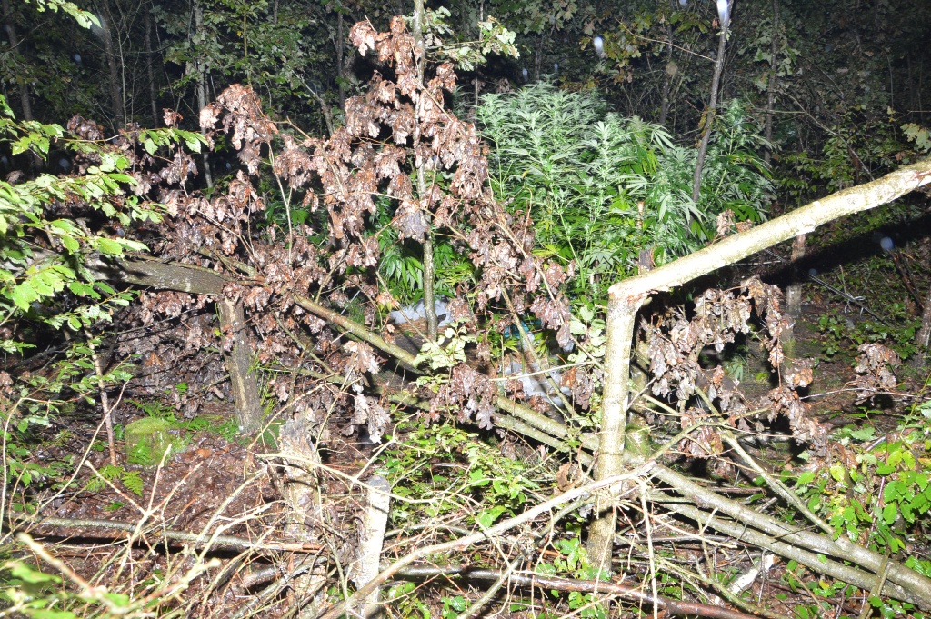 Kryminalni udali się do lasu i znaleźli plantację składającą się z 44 krzaków. Była ona prowizorycznie zamaskowana połamanymi gałęziami drzew, co miało utrudnić jej ujawnienie. Policjanci podjęli obserwację plantacji.