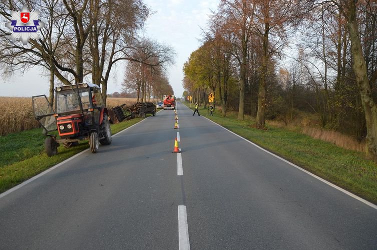 Do zdarzenia doszło wczoraj po godz. 13:00 na drodze wojewódzkiej W-811 w miejscowości Cicibór Duży. Ze wstępnych ustaleń wynika, że kierujący rowerem, 82-letni mieszkaniec Białej Podlaskiej przygnieciony został przez przyczepę przewożącą drewno. Jak ustalili mundurowi odpięła się ona od ciągnika rolniczego podczas wykonywanego manewru wyprzedzania. Ciągnikiem kierował 47-letni mieszkaniec gm. Biała Podlaska. W chwili zdarzenia mężczyzna był trzeźwy. Potwierdziło to przeprowadzone przez mundurowych badanie. W wyniku wypadku kierowca jednośladu doznał obrażeń ciała i przewieziony został do szpitala.