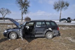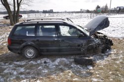 Wczoraj rano doszło do zdarzenia drogowego w miejscowości Horodyszcze. Kierujący samochodem VW Passat 18-letni mieszkaniec gminy Biała Podlaska w trakcie wyprzedzania skręcającego na skrzyżowaniu w lewo VW Sharana, doprowadził do zderzenia pojazdów. Następnie VW Passat uderzył we wjeżdżające na skrzyżowanie osobowe Audi, którym kierowała 25-letnia mieszkanka gminy Wisznice. Swój niebezpieczny rajd 18-latek zakończył na poboczu z rozbitym przodem samochodu i urwanym kołem.
