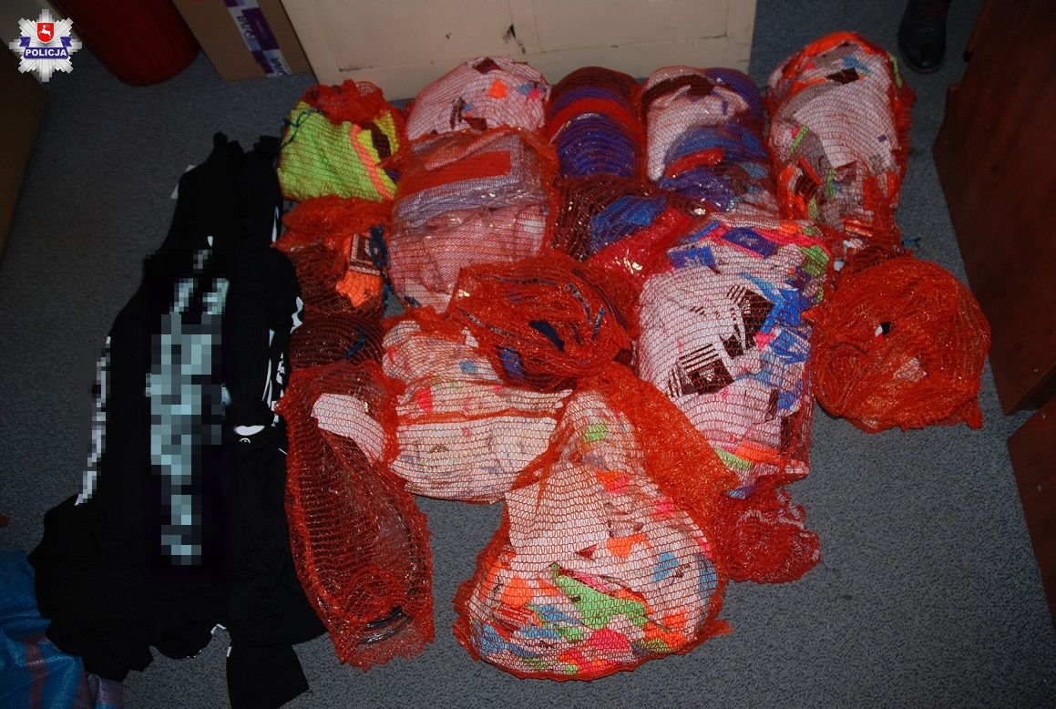 Wczoraj policjanci weszli do mieszkania zajmowanego przez 32-letnią mieszkankę Białej Podlaskiej. Podczas prowadzonych czynności zabezpieczyli ponad 400 sztuk różnego rodzaju odzieży, m.in.: koszulek, legginsów, czapek, skarpetek i pasków z naniesionym „logo” popularnych marek. Podróbki trafiły do policyjnego depozytu.