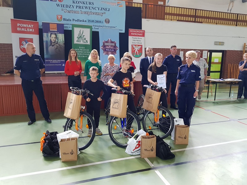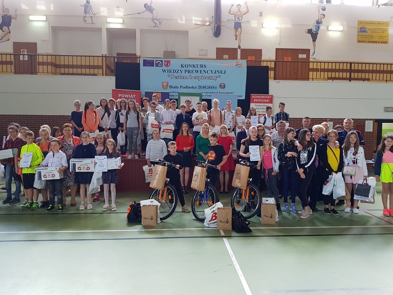 W hali sportowej Szkoły Podstawowej nr 5 w Białej Podlaskiej odbył się Powiatowy Finał Konkursu Wiedzy Prewencyjnej „Jestem Bezpieczny”. Celem organizowanego już od 18 lat konkursu jest upowszechnienie wiedzy o zagrożeniach z jakimi młodzi ludzie mogą spotkać się w swoim codziennym życiu, rozwijanie postaw umożliwiających unikanie, zapobieganie i pokonywanie niebezpieczeństw oraz zapoznanie dzieci i młodzieży z prawidłowymi reakcjami w sytuacjach zagrożenia życia i zdrowia.