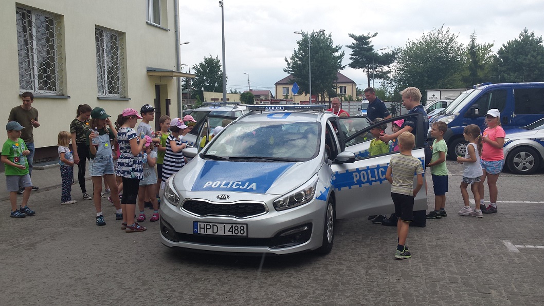 Był również czas by obejrzeć policyjny sprzęt, w tym oznakowane radiowozy. Dziedziniec komendy rozbrzmiewał głośnym śmiechem najmłodszych oraz dźwiękiem „policyjnej syreny”.
