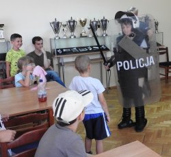Wiele emocji wzbudziła przygotowana przez funkcjonariuszy walizka kryminalistyczna. Dzieci poznawały niektóre metody zabezpieczania śladów na miejscu zdarzenia. Mogły również zobaczyć jak zabezpiecza się ślady linii papilarnych. Na pamiątkę otrzymały karteczki z odbitkami swoich linii papilarnych.