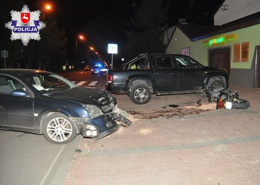 Do drugiego zdarzenia doszło wczoraj po godz. 20:40 w Białej Podlaskiej na ul. Francuskiej. Z ustaleń mundurowych wynika, że kierujący samochodem marki Opel, 28-letni mieszkaniec gm. Biała Podlaska, zderzył się z motocyklem marki Honda. Mężczyzna skręcając w lewo na parking, prawdopodobnie nie udzielił pierwszeństwa kierującemu jednośladem. Motocyklem kierował 25-letni mieszkaniec gm. Biała Podlaska, który w wyniku zdarzenia doznał obrażeń ciała i przewieziony został do szpitala. Kierujący autem był trzeźwy, potwierdziło to przeprowadzone przez mundurowych badanie. W wyniku wypadku do szpitala trafił kierowca.