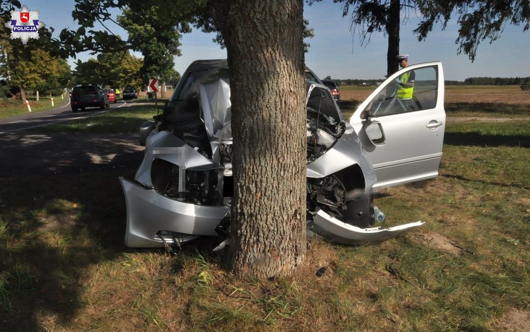 W wyniku wypadku śmierć na miejscu zdarzenia poniósł 30-letni pasażer. Ranny kierowca rozbitej skody śmigłowcem przetransportowany został do szpitala w Lublinie. Obrażeń ciała doznali również dwaj pasażerowie auta.